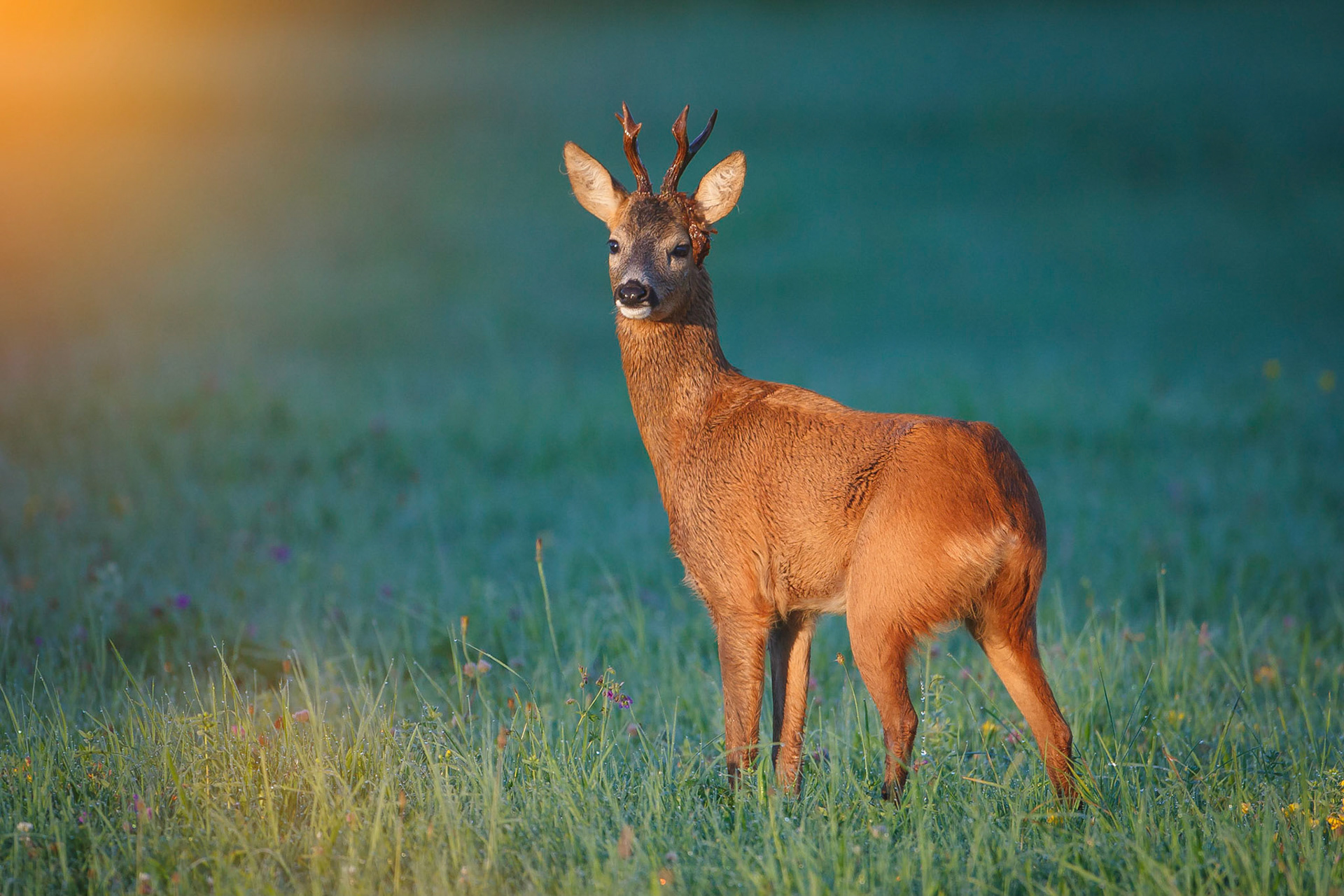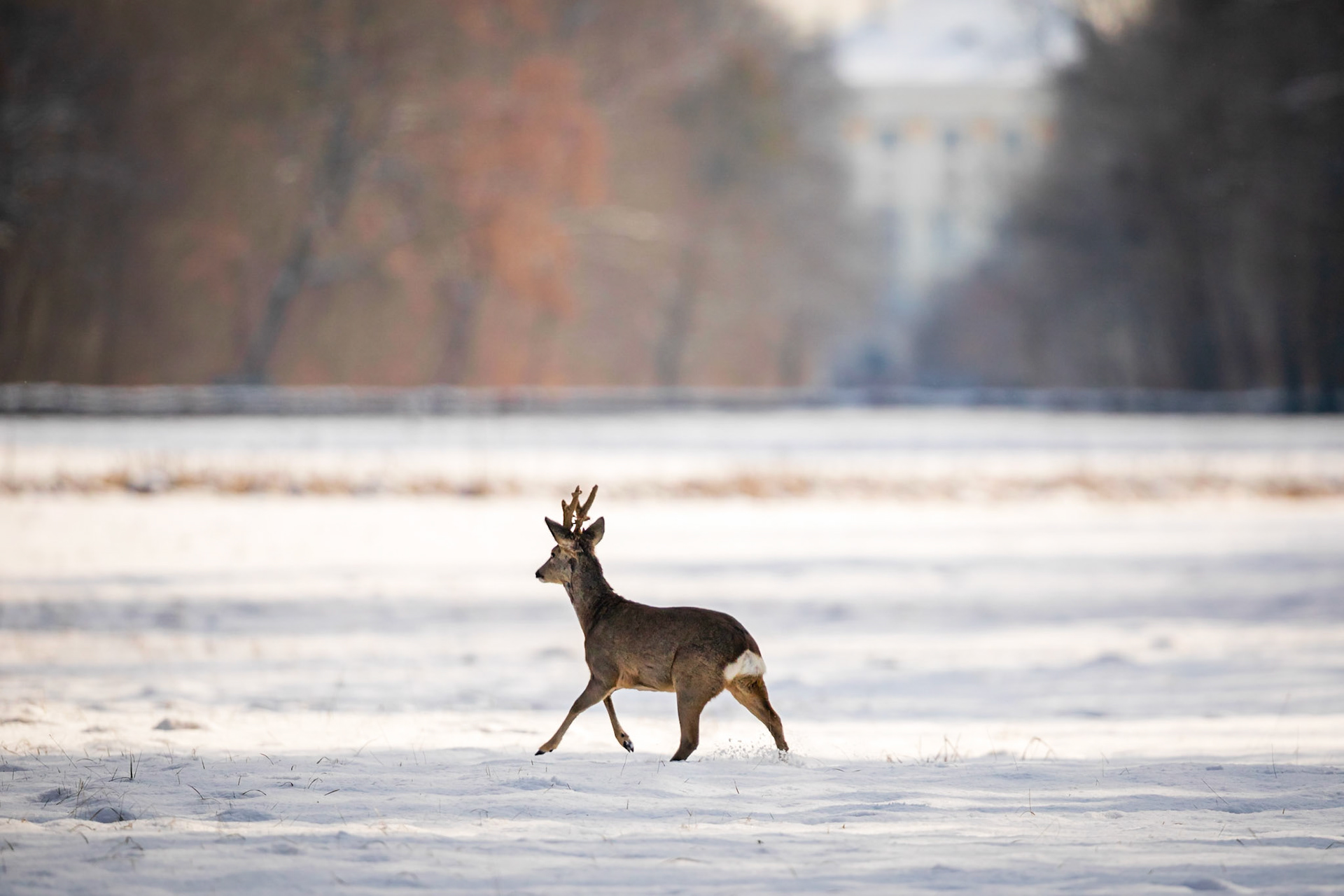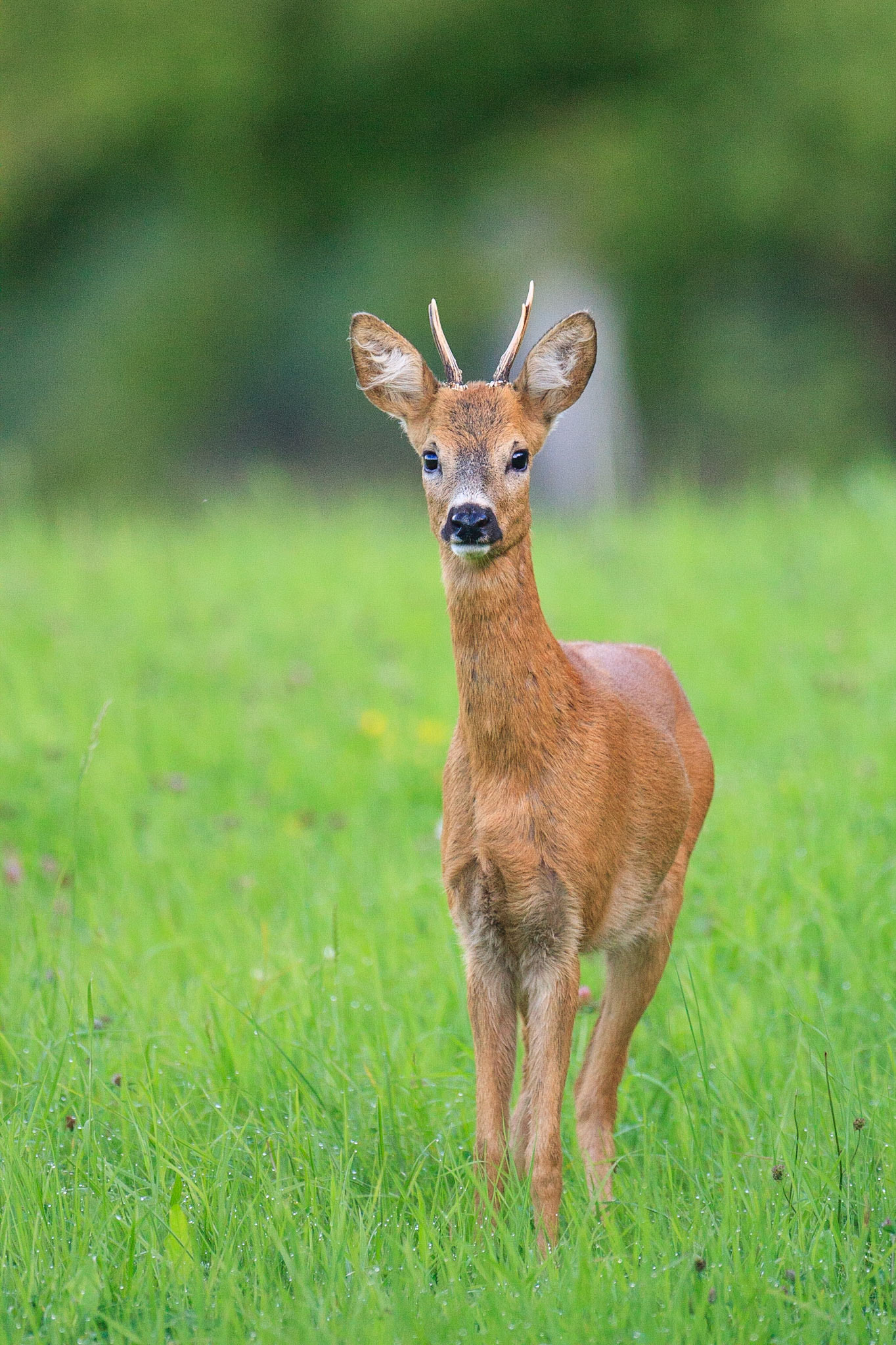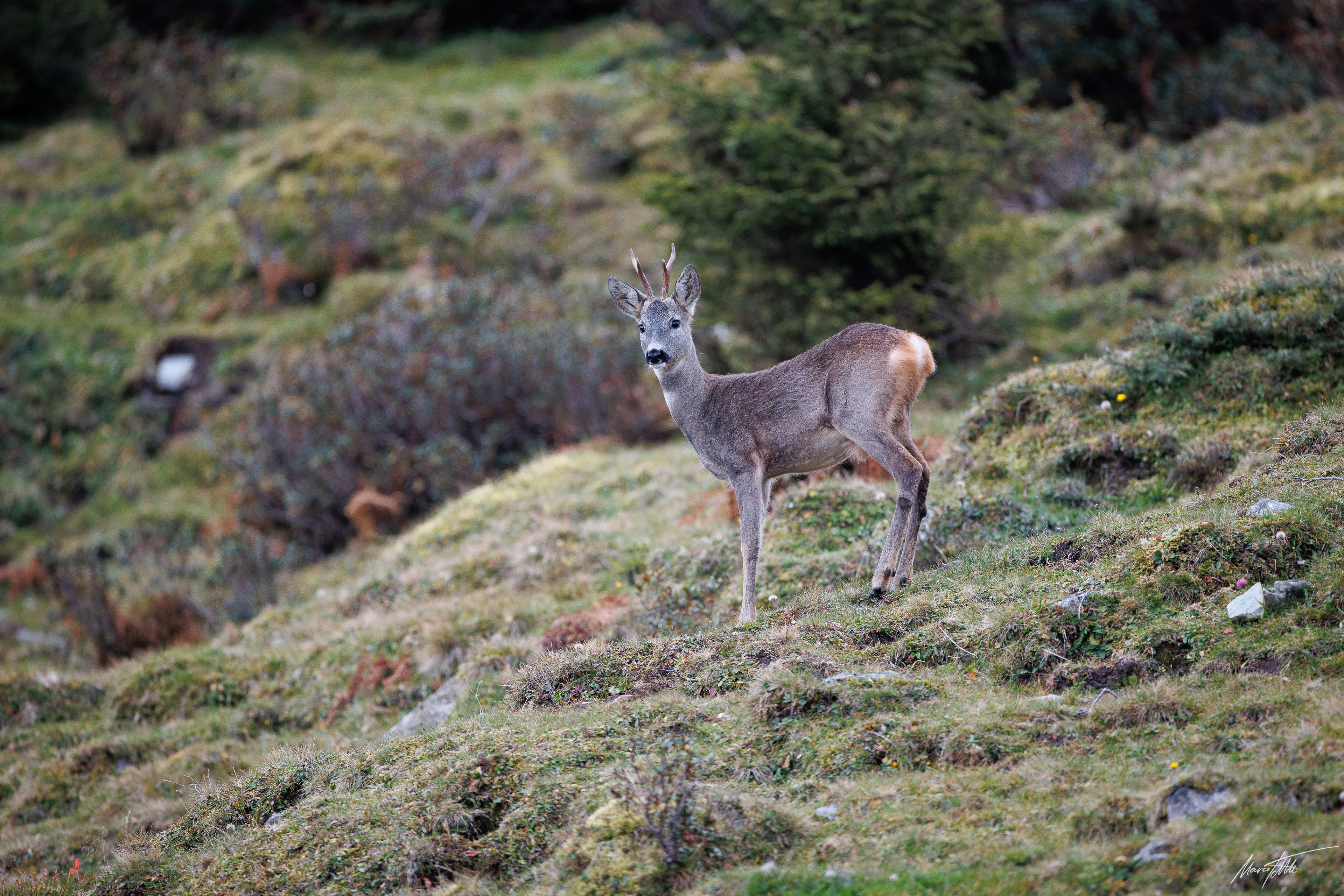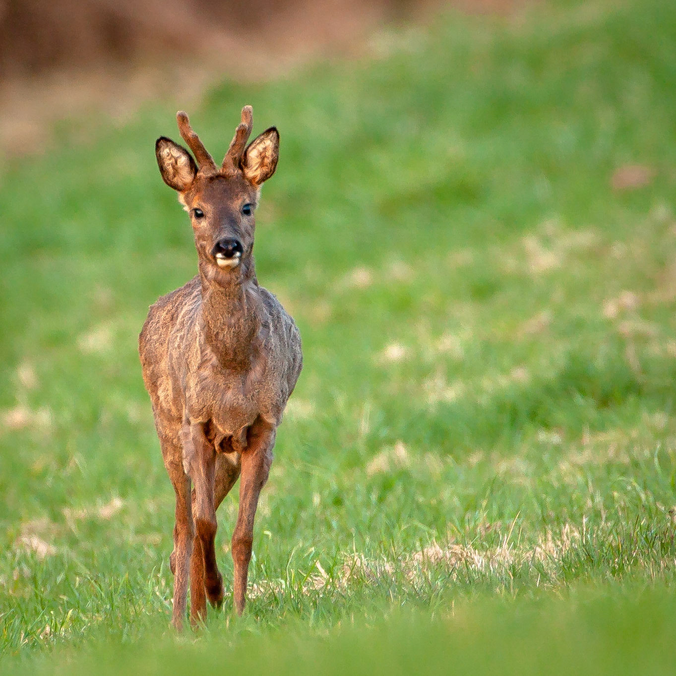Ein über 10-jährigr Rehbock im Bast mit bliendem Licht auf der linken Seite (grauer Star) - der Bock wurde am Folgetag von einem Hund gerissen