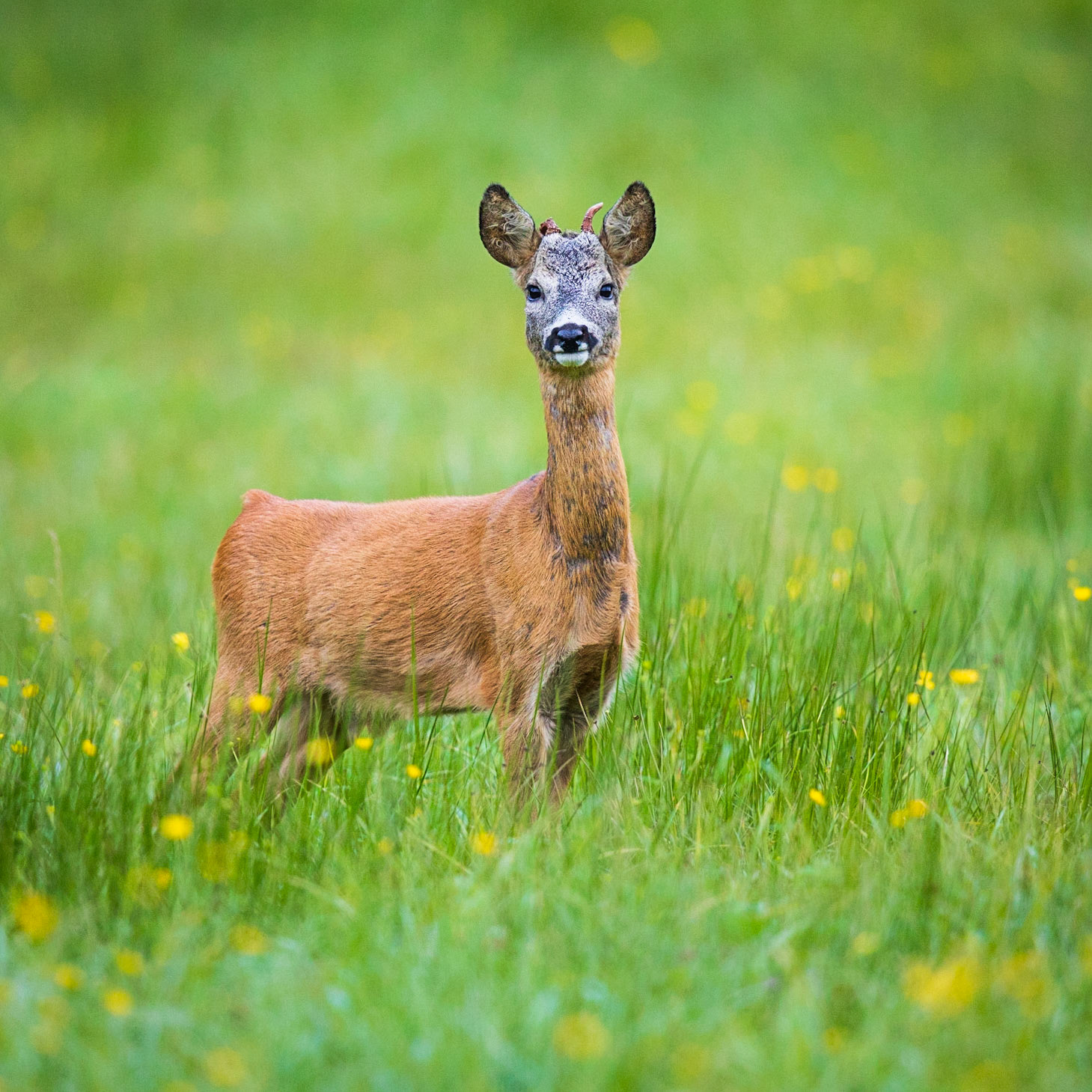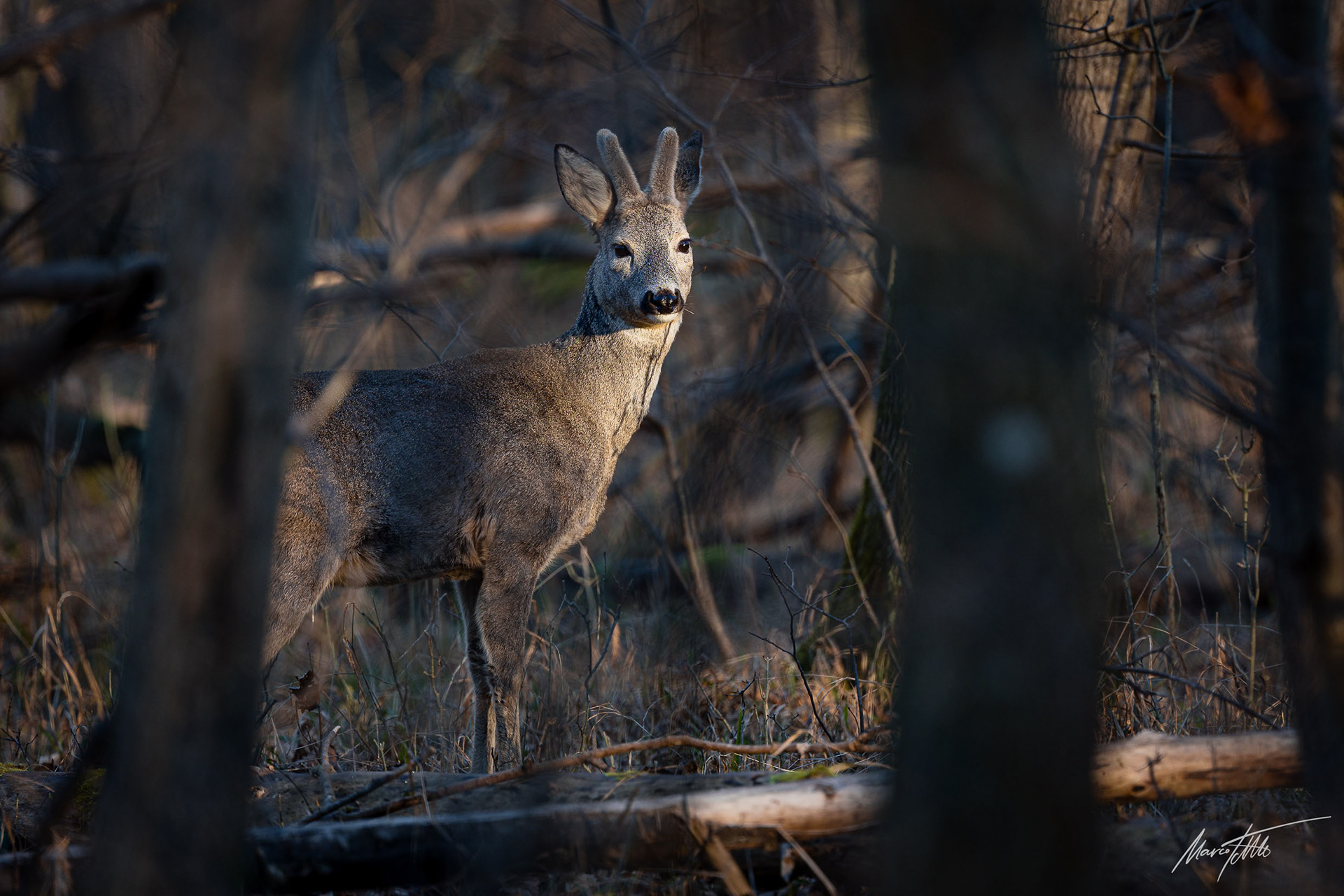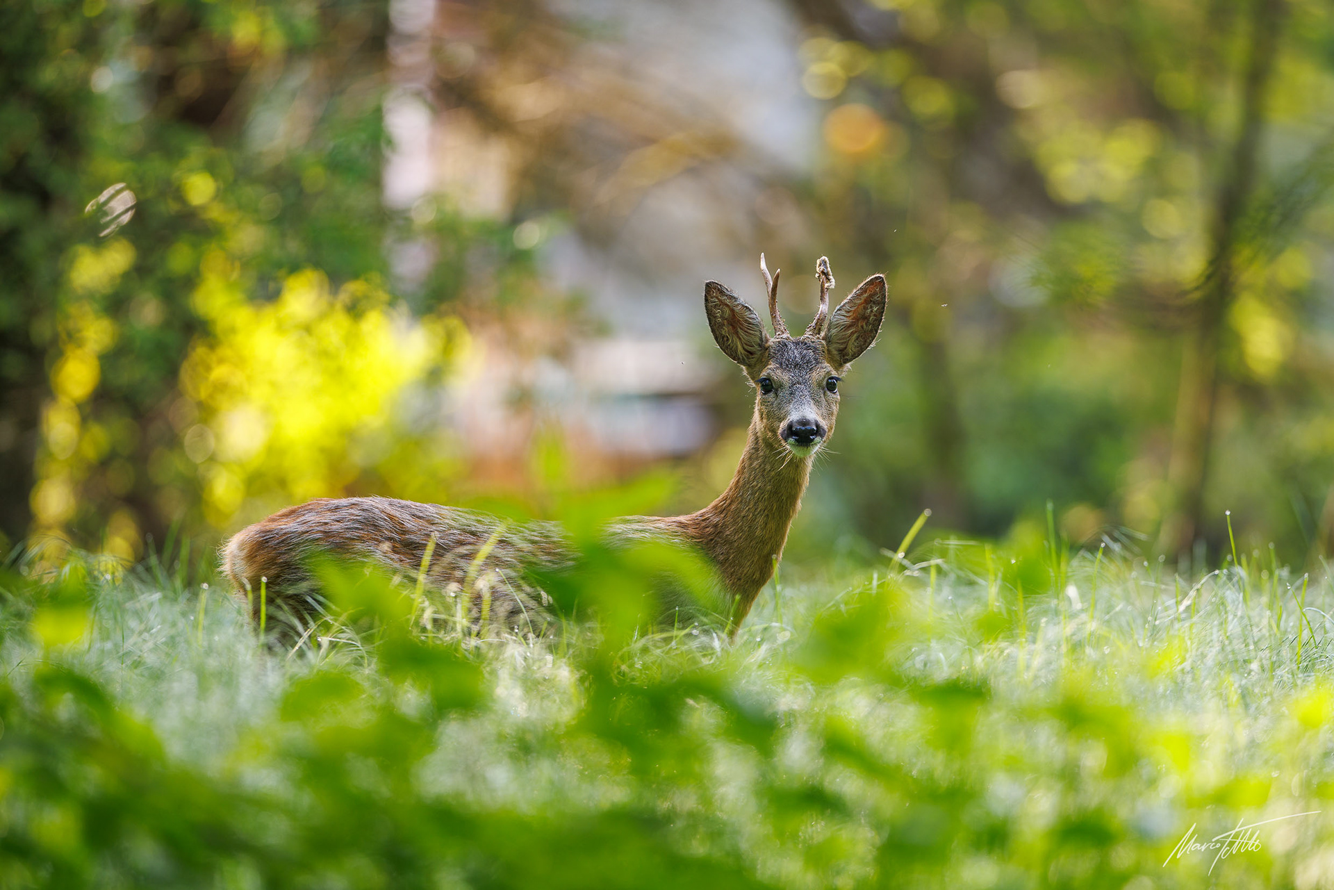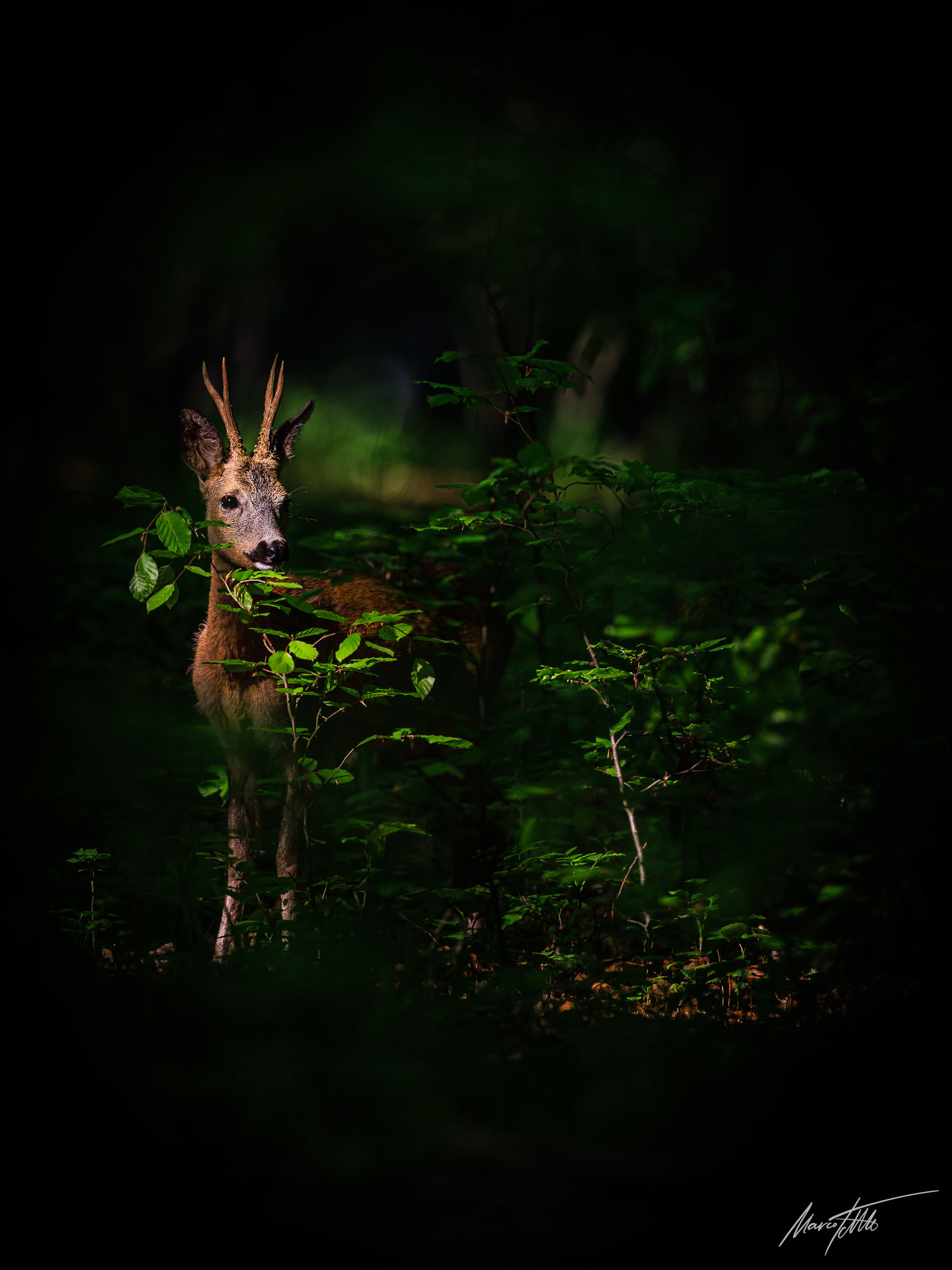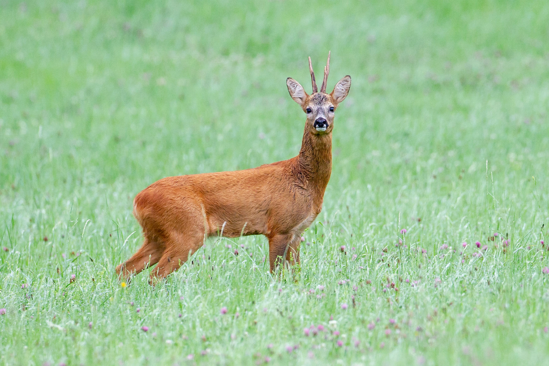 Ein über 10-jährigr Rehbock im Bast mit bliendem Licht auf der linken Seite (grauer Star) - der Bock wurde am Folgetag von einem Hund gerissen