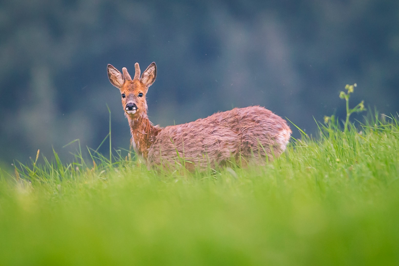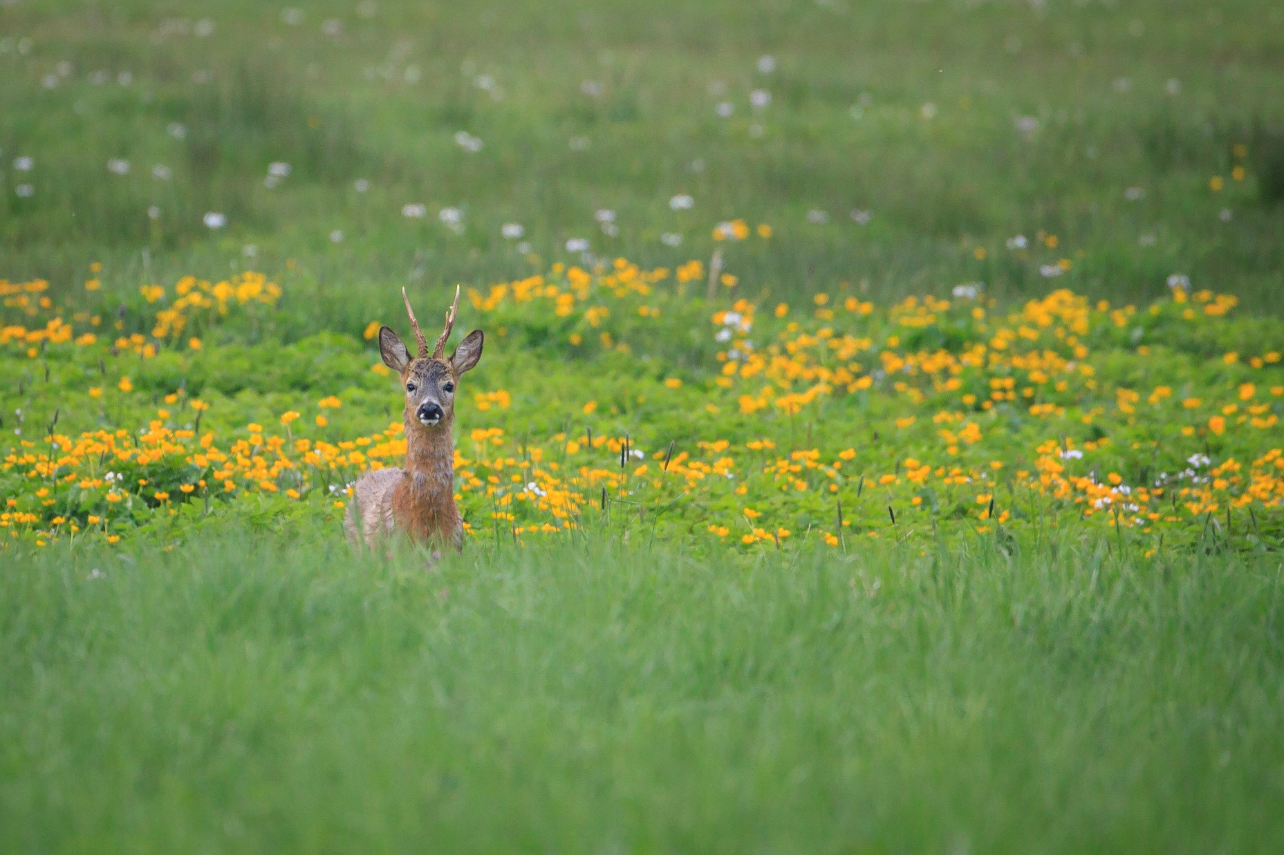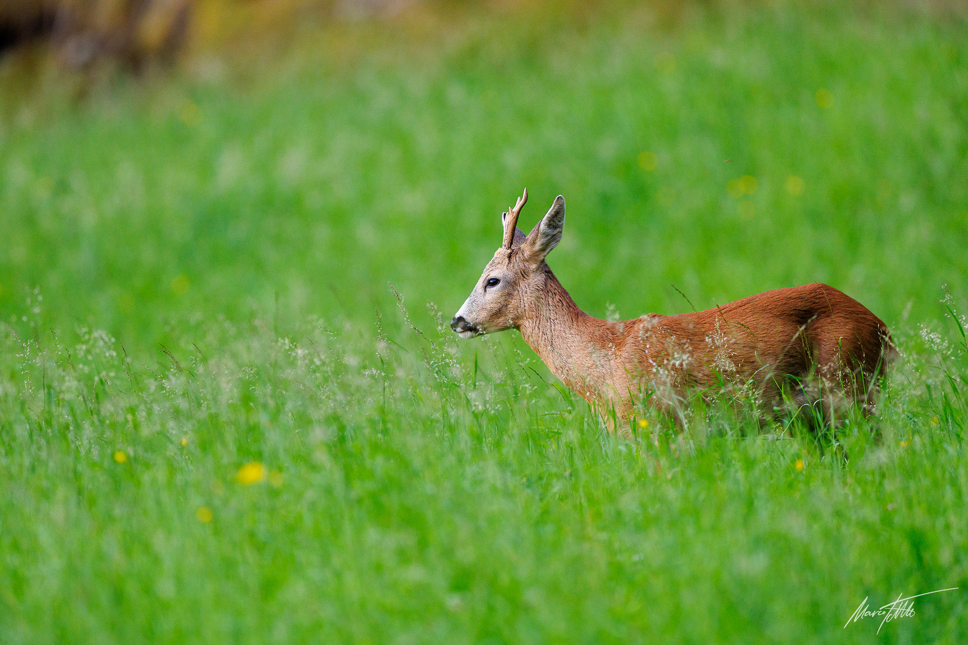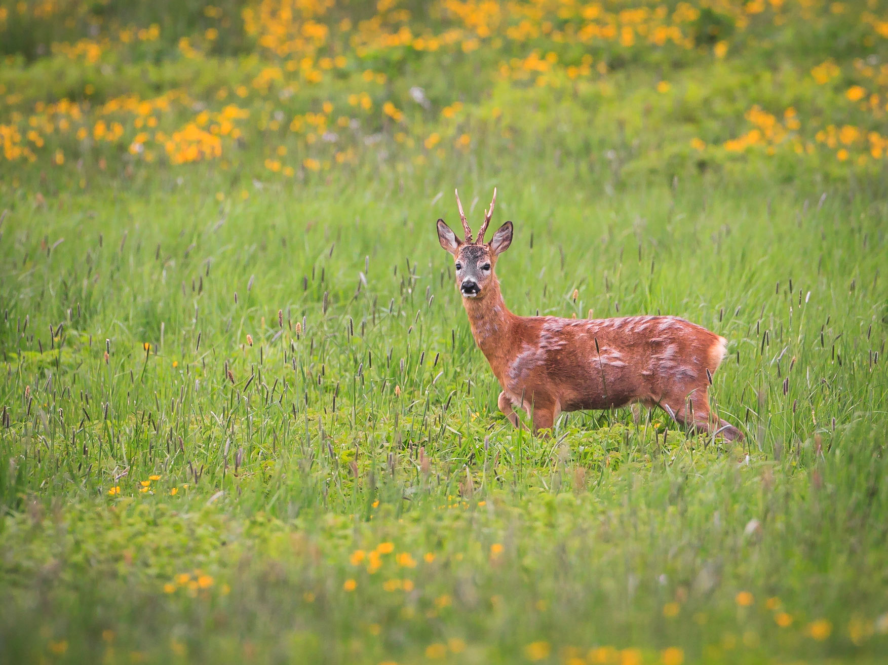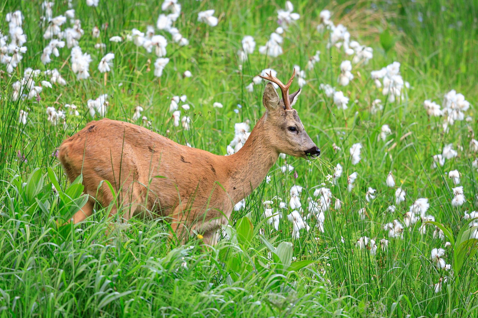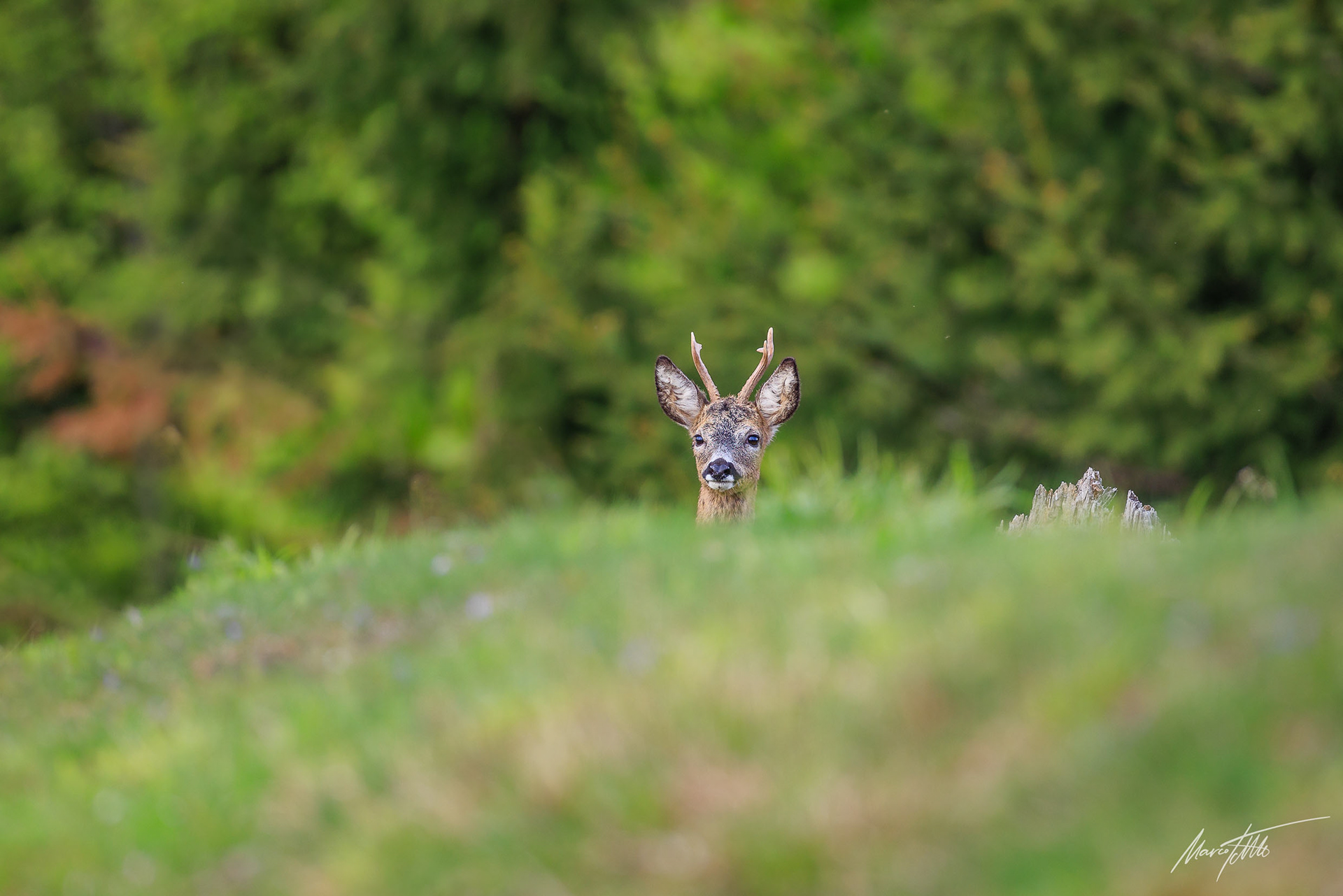Ein über 10-jährigr Rehbock im Bast mit bliendem Licht auf der linken Seite (grauer Star) - der Bock wurde am Folgetag von einem Hund gerissen