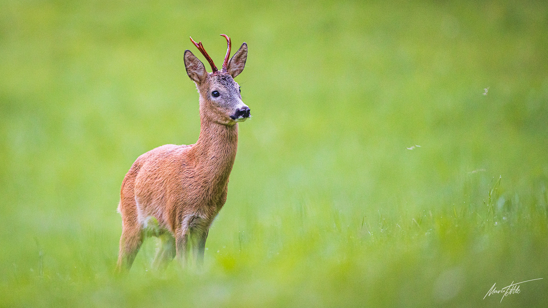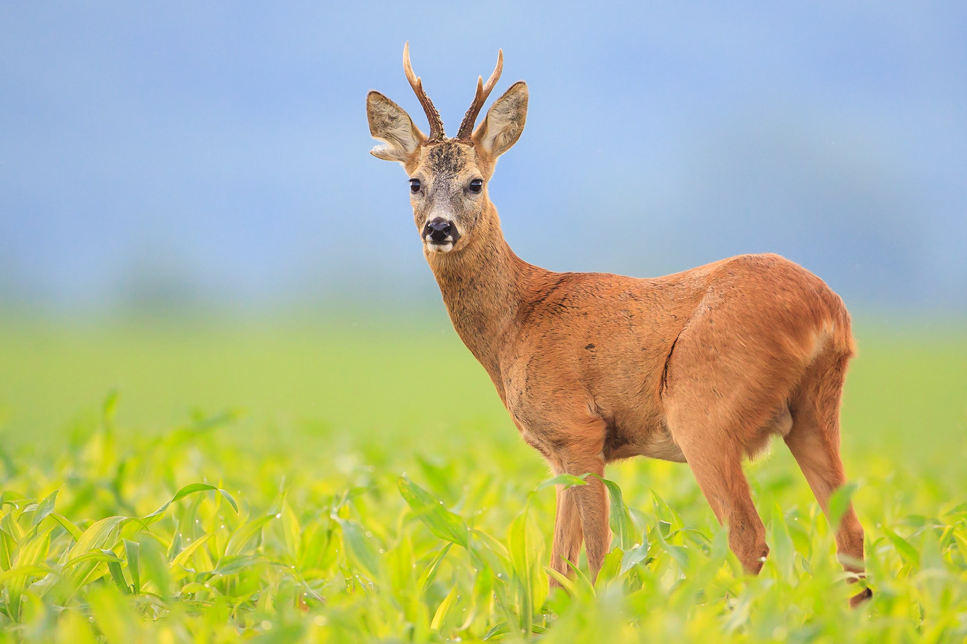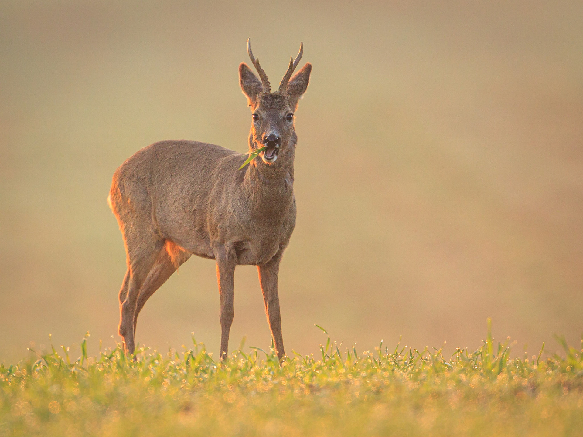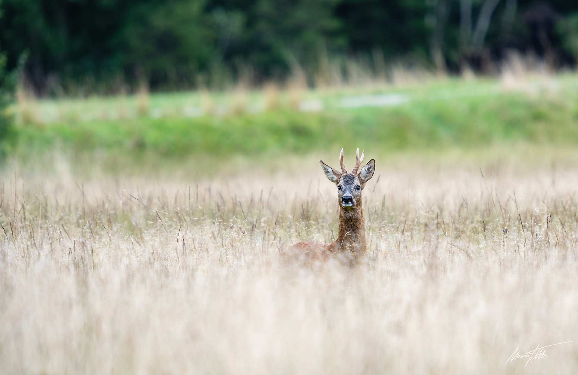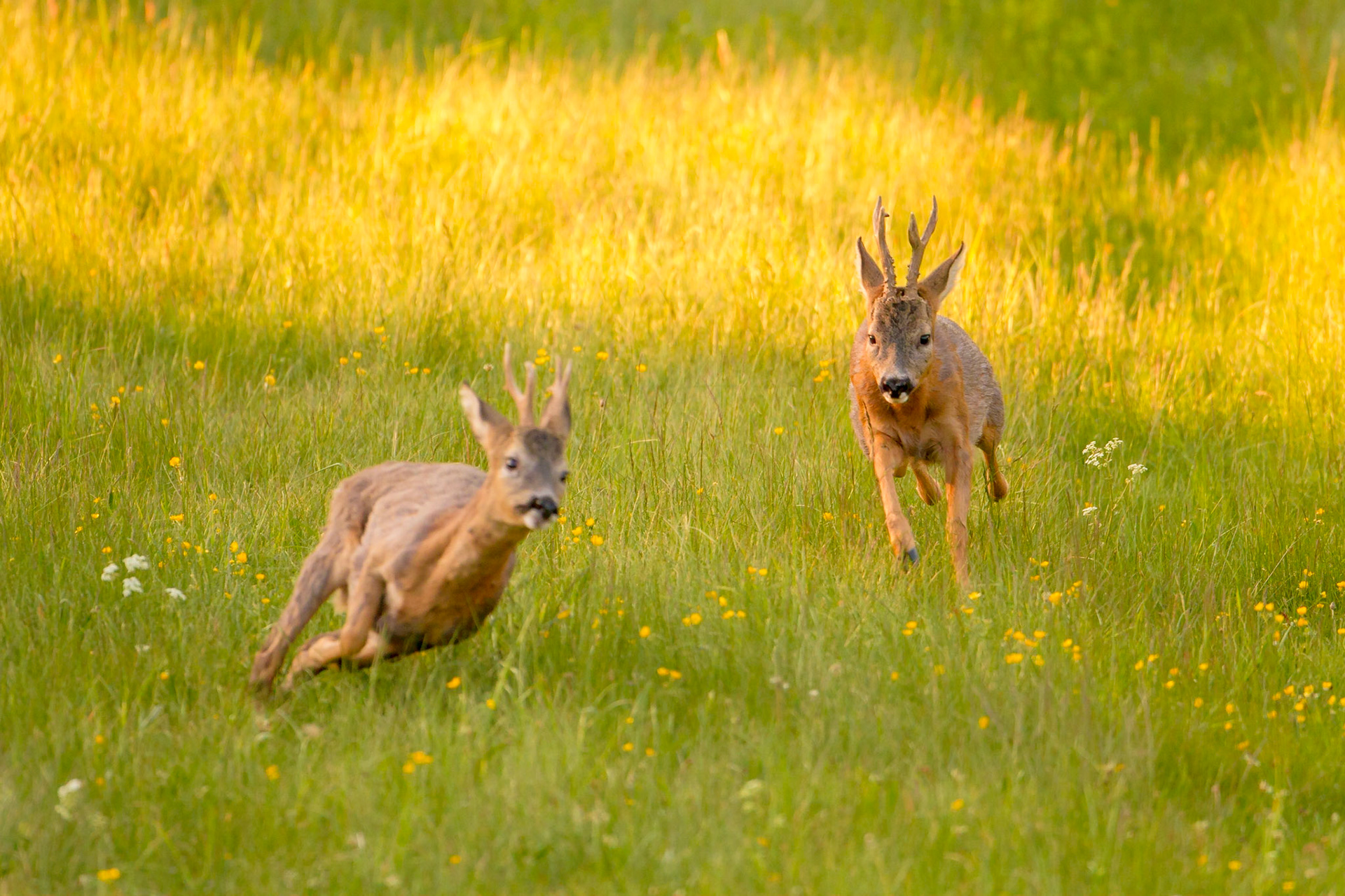 Ein über 10-jährigr Rehbock im Bast mit bliendem Licht auf der linken Seite (grauer Star) - der Bock wurde am Folgetag von einem Hund gerissen