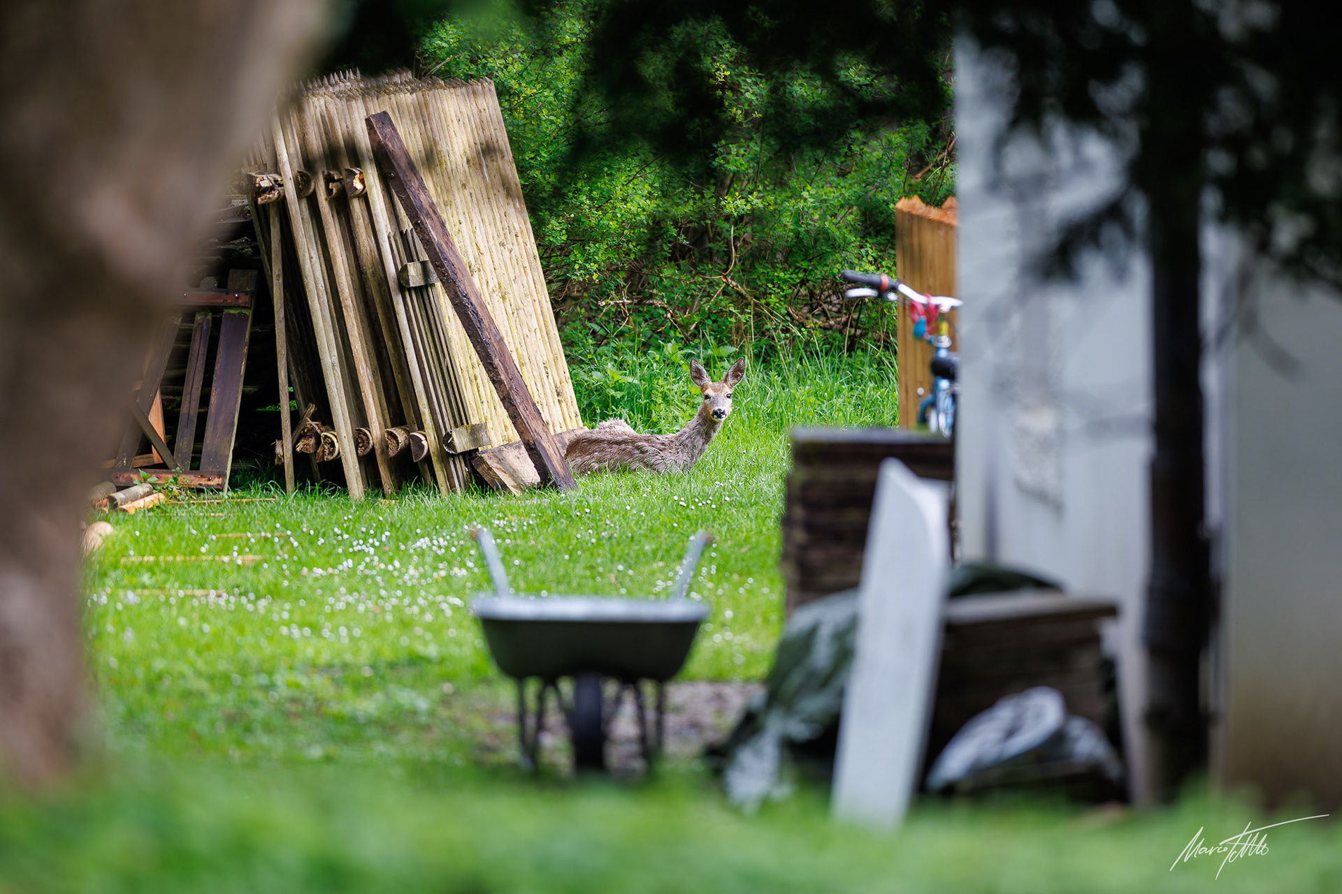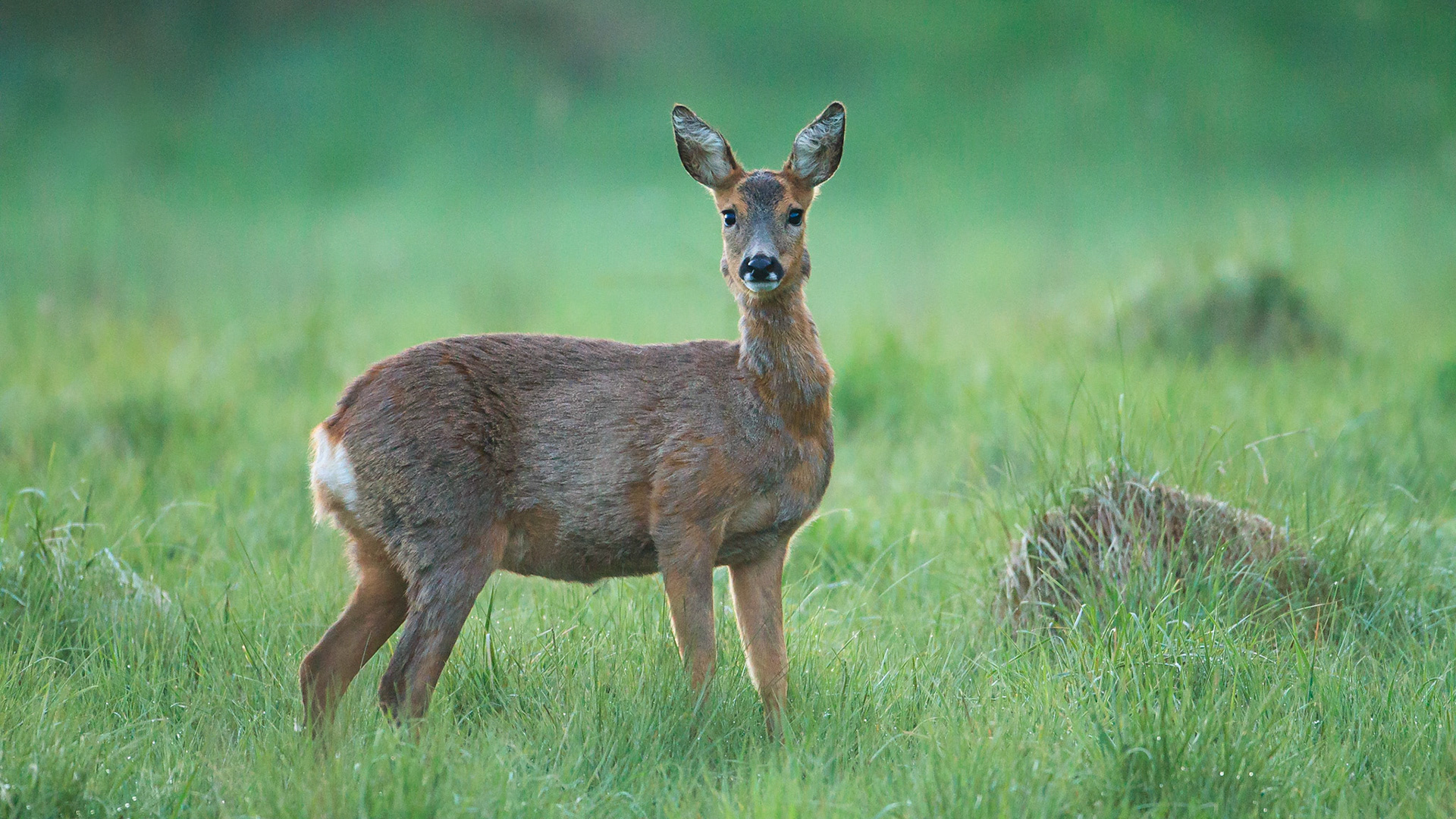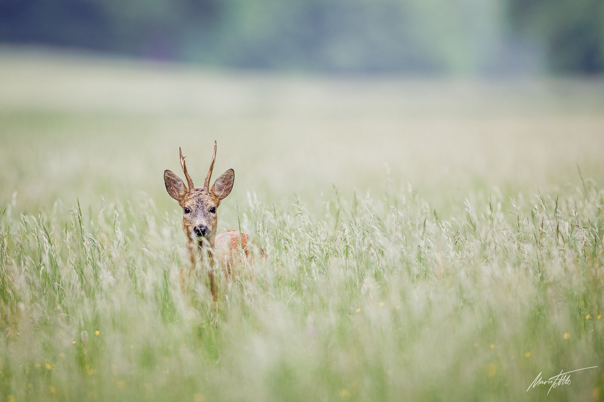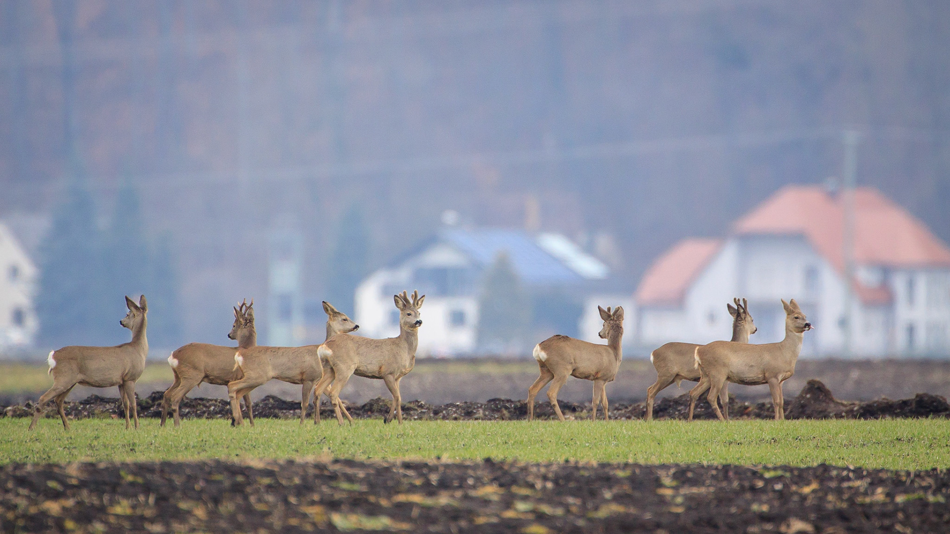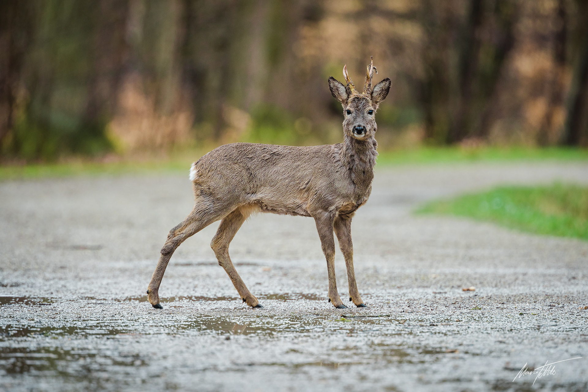 Ein über 10-jährigr Rehbock im Bast mit bliendem Licht auf der linken Seite (grauer Star) - der Bock wurde am Folgetag von einem Hund gerissen