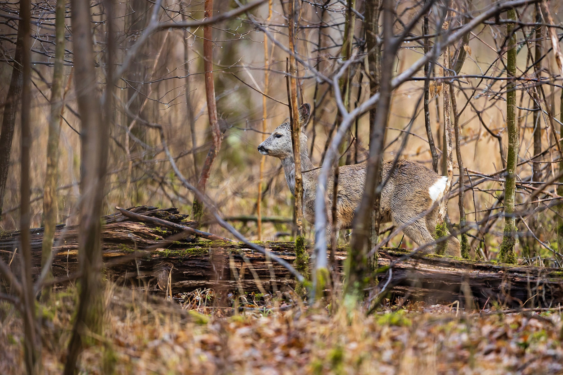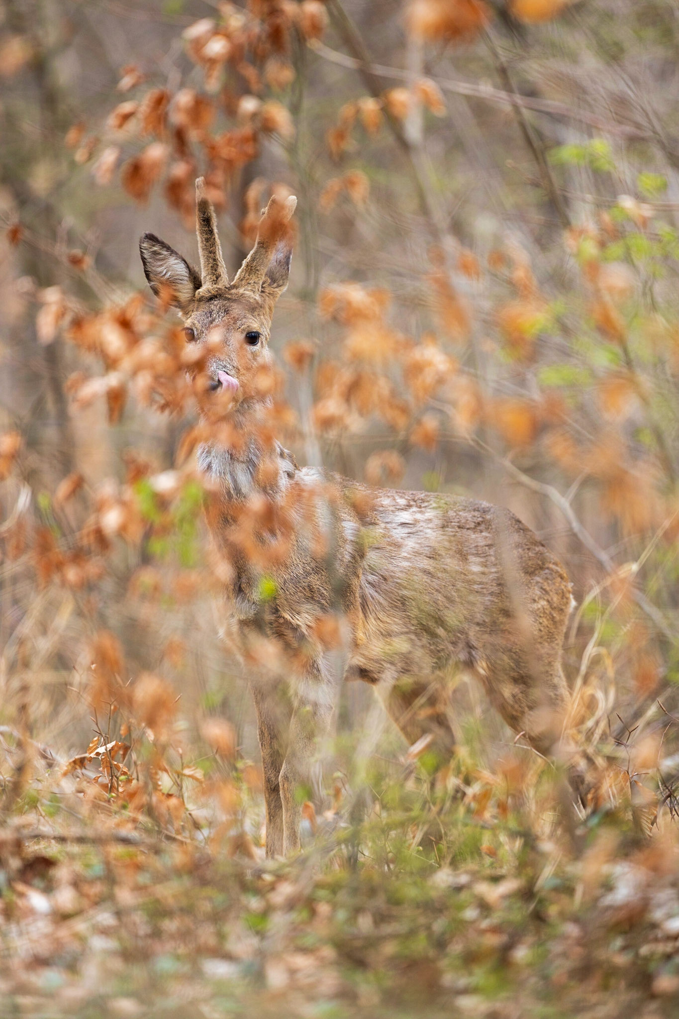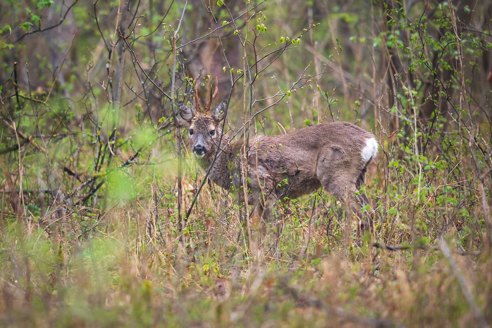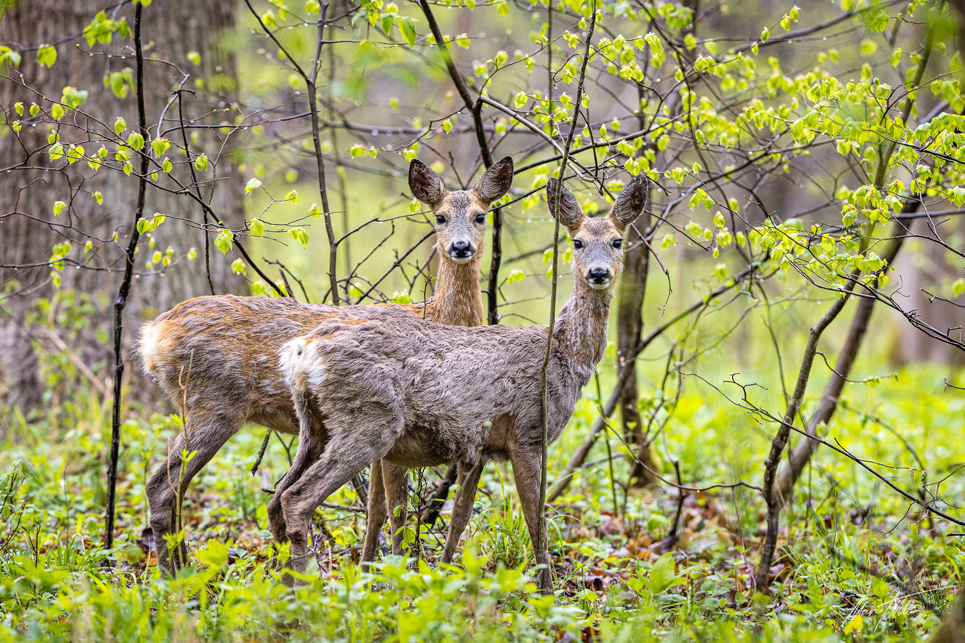 Ricke im Haarwechsel im frühlingshaftem Unterholz