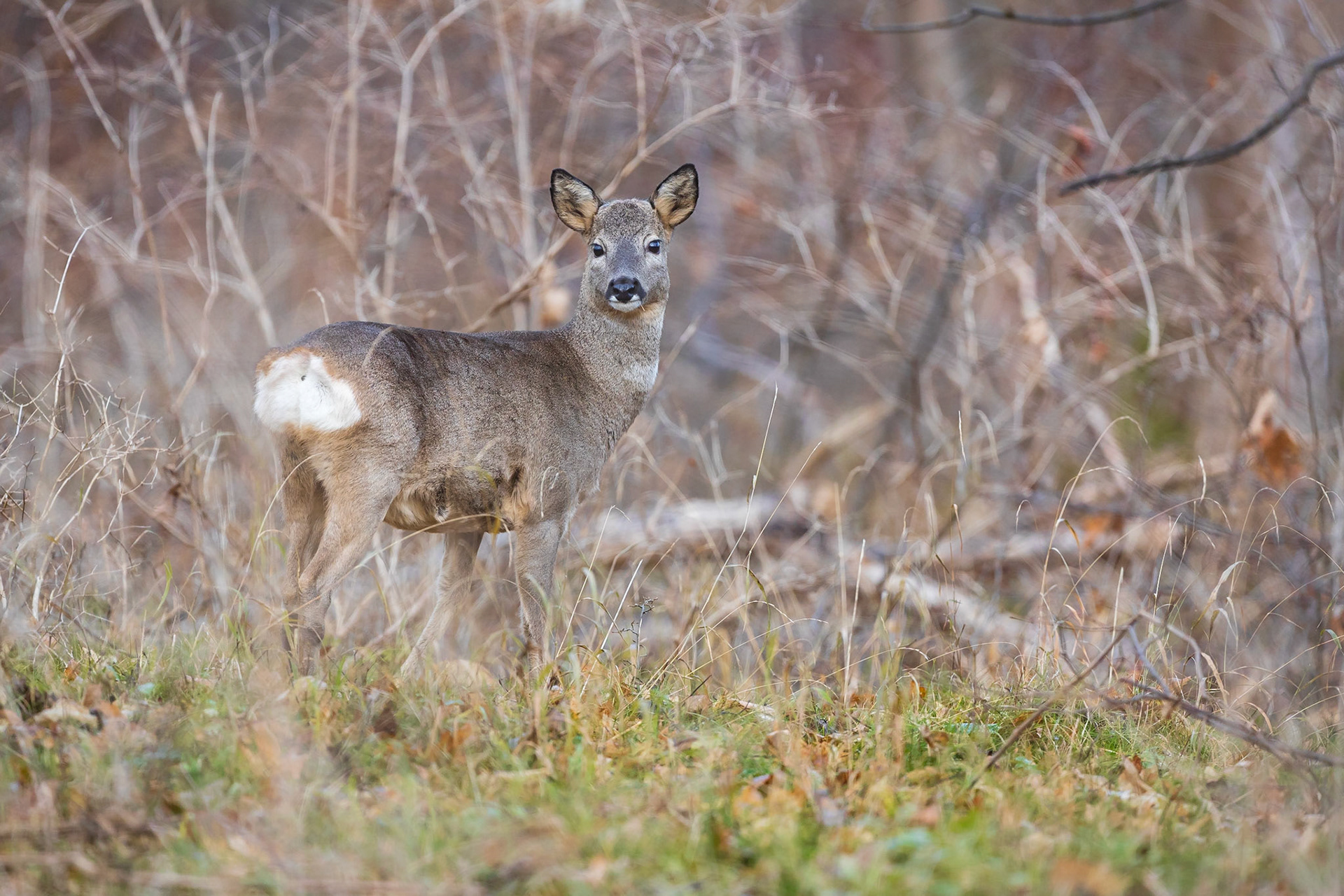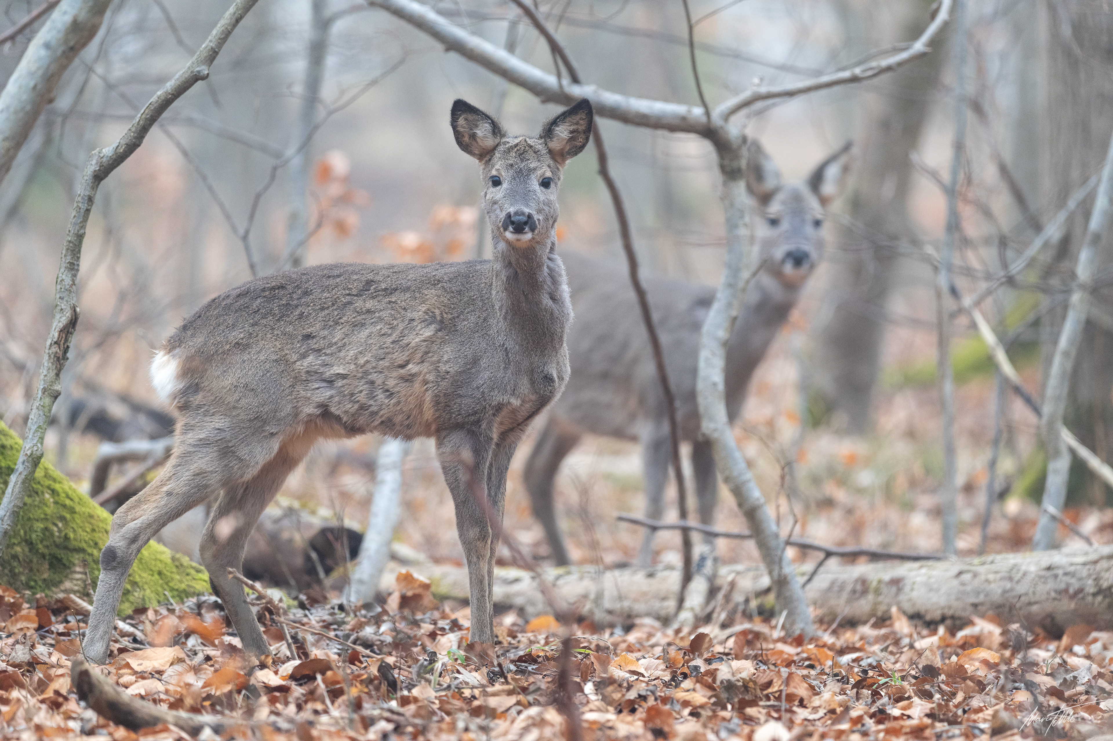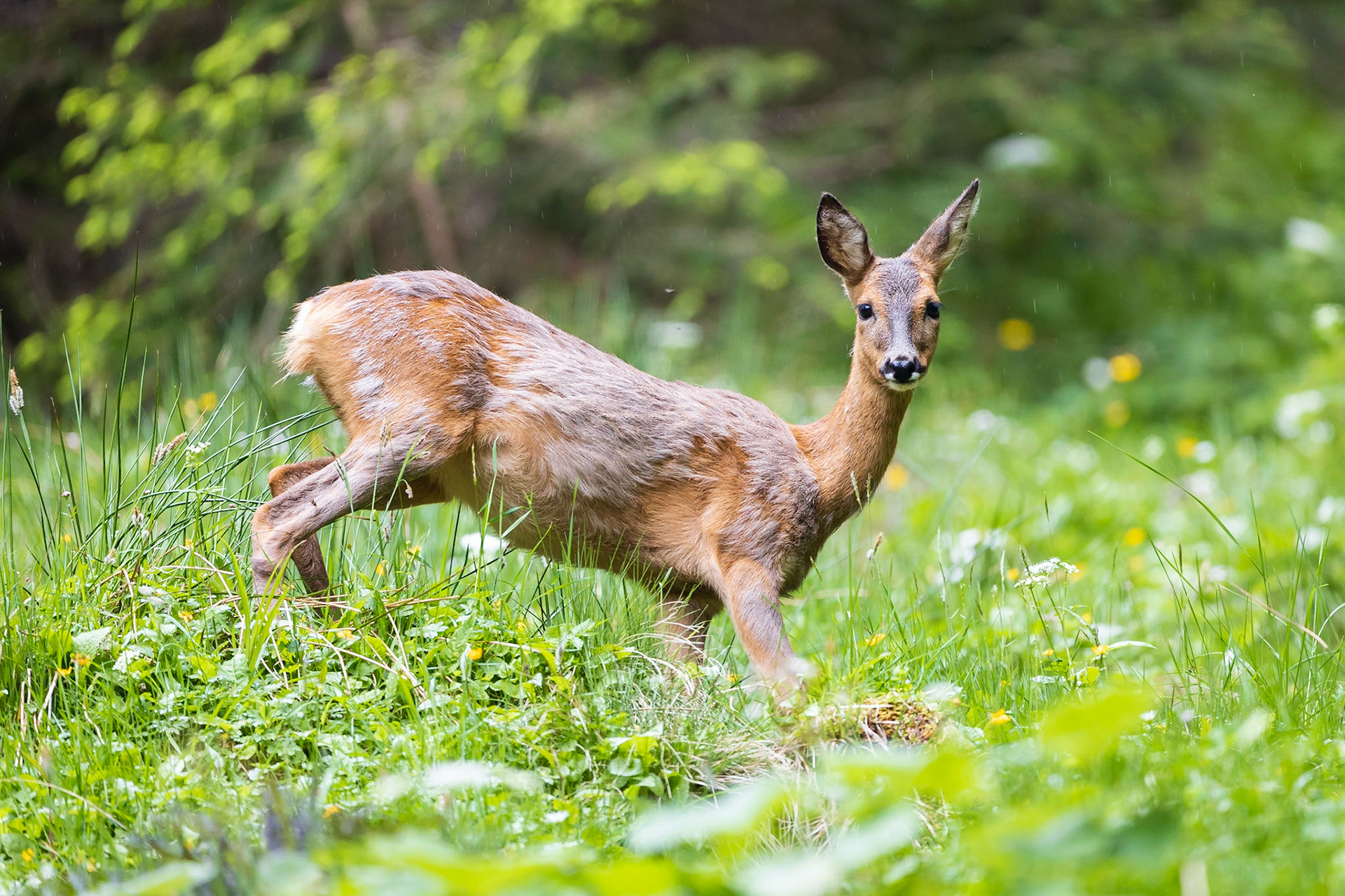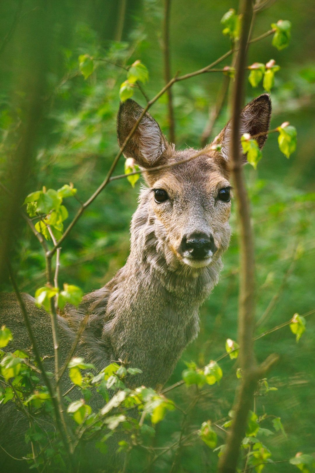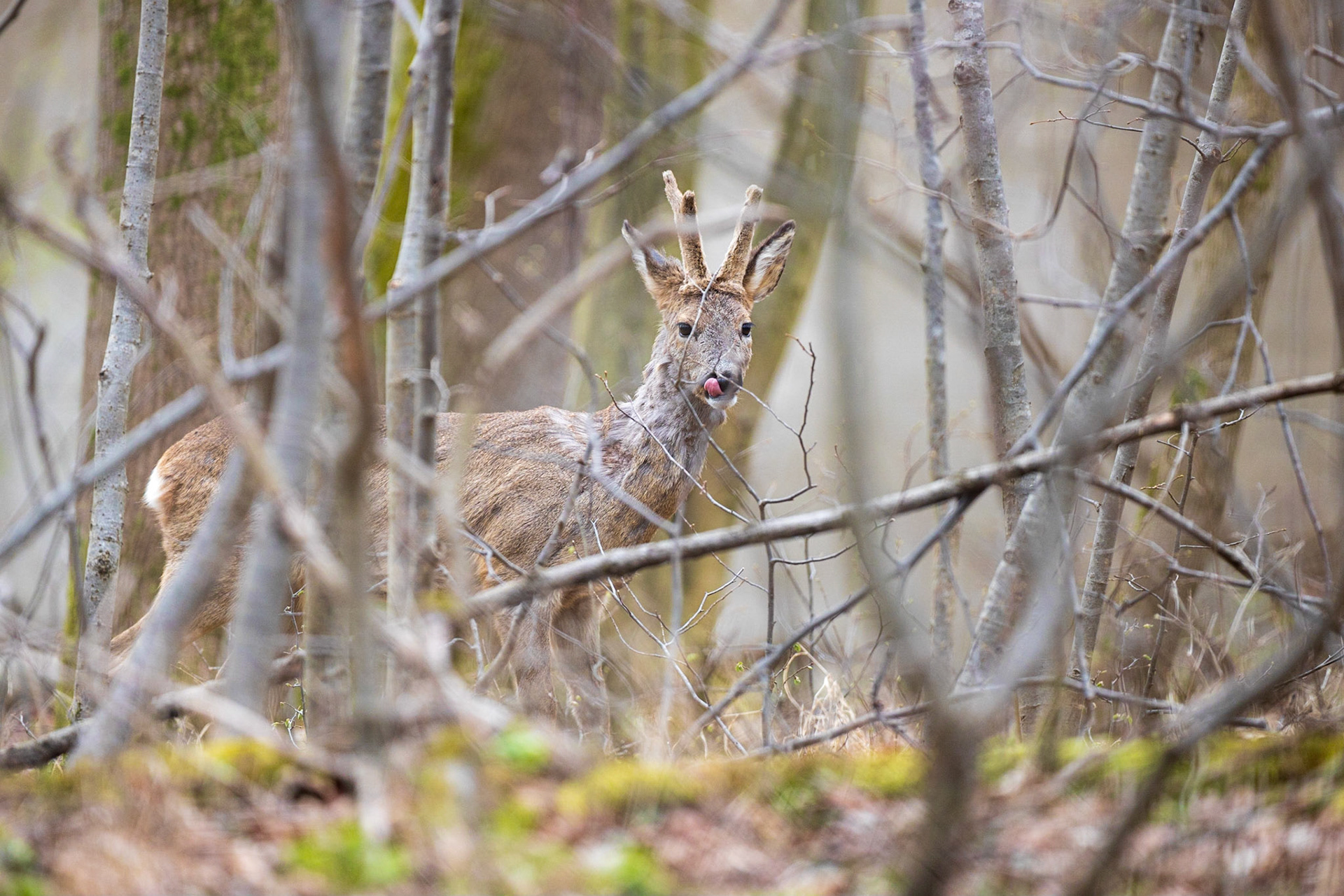 Ricke im Haarwechsel im frühlingshaftem Unterholz