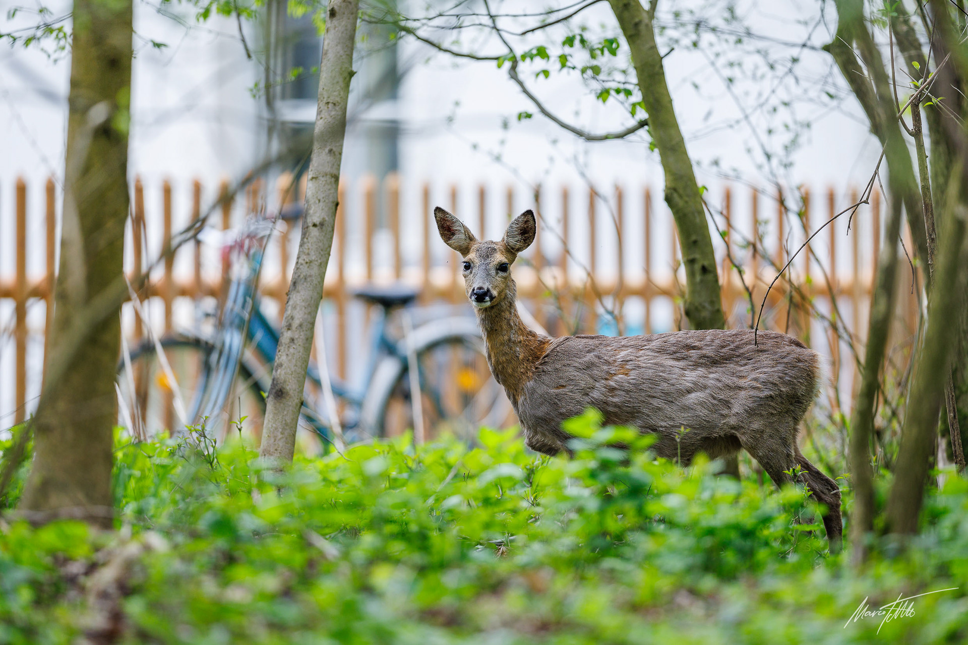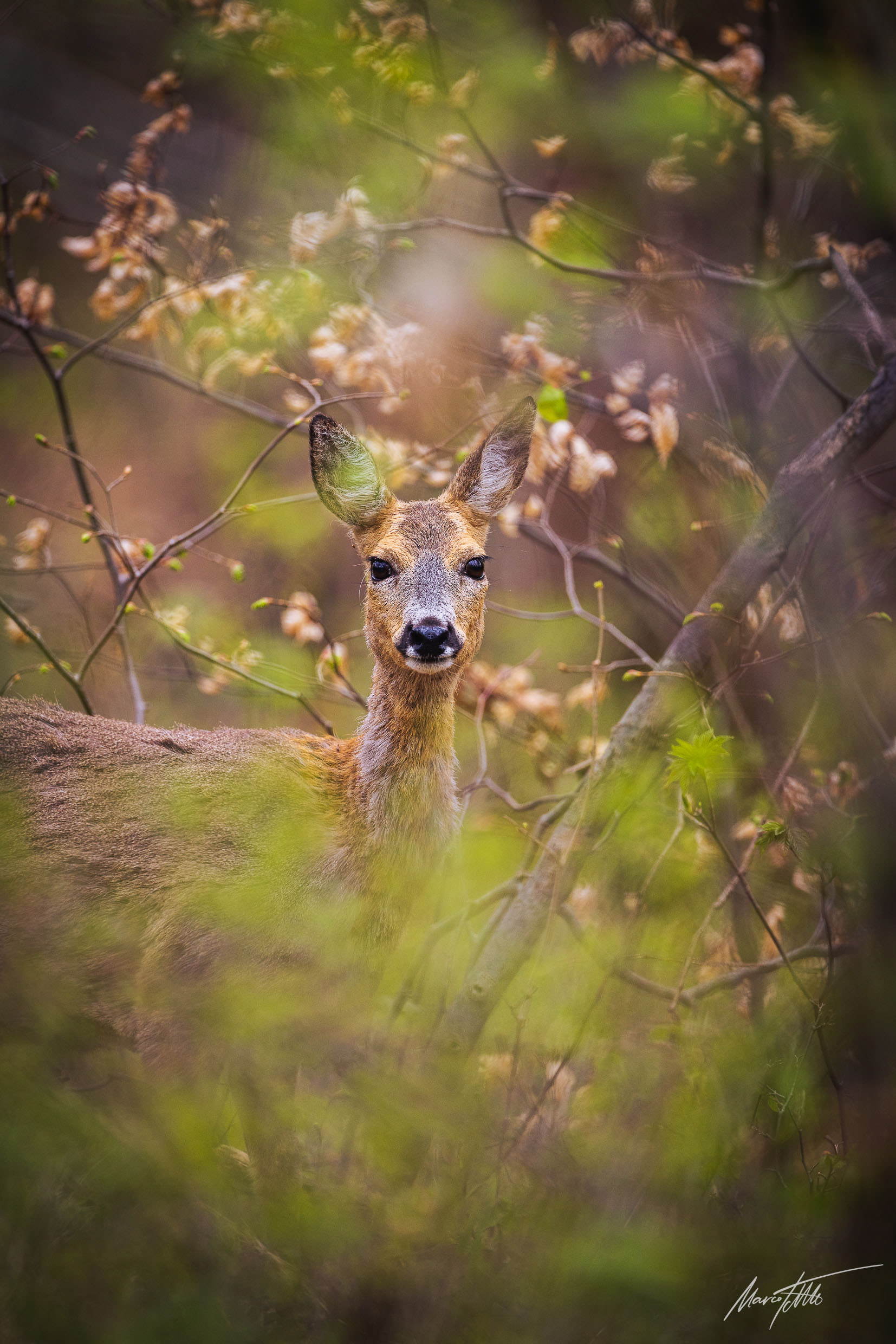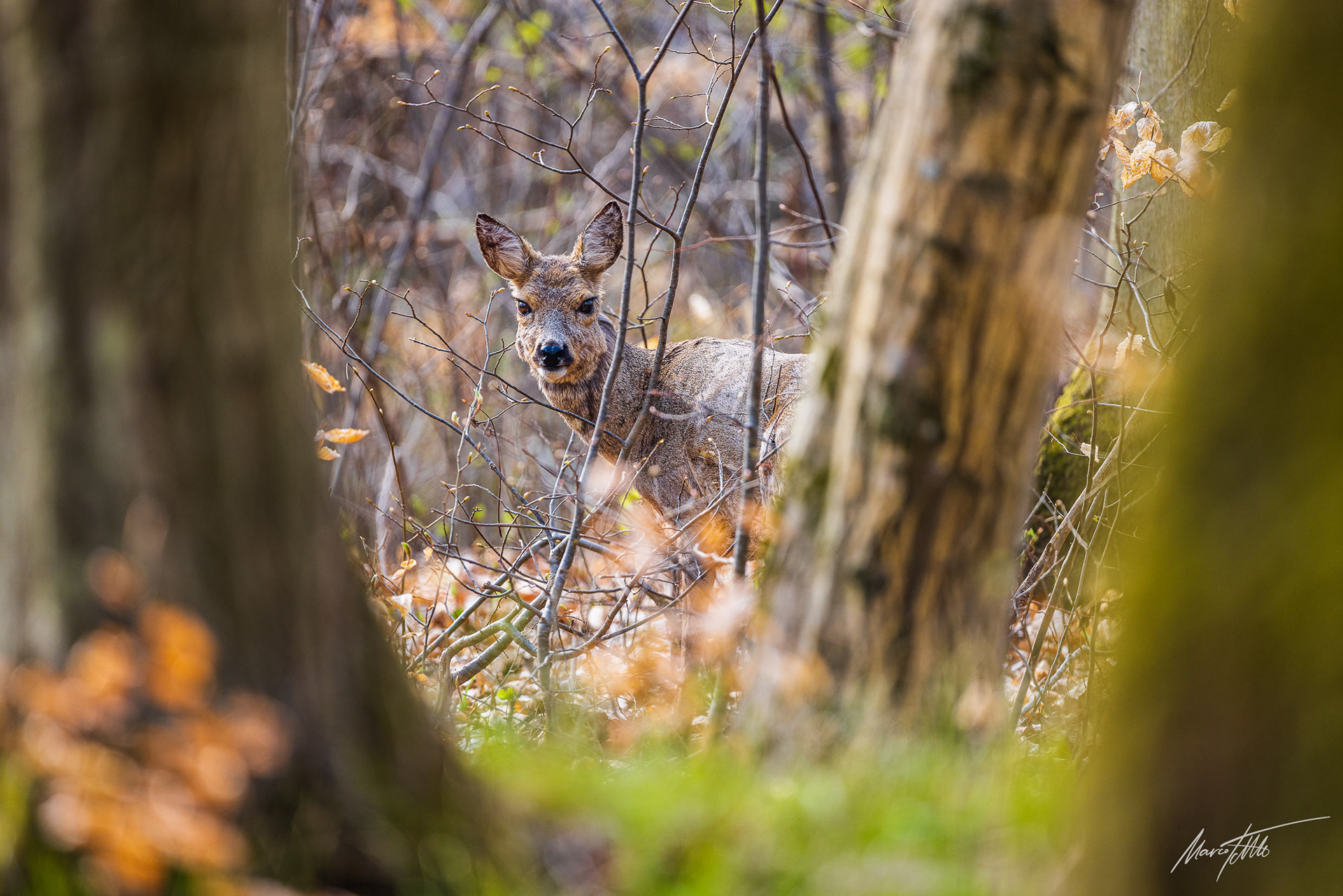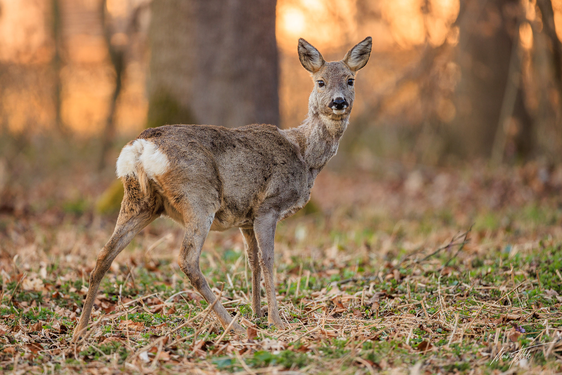Ricke im Haarwechsel im frühlingshaftem Unterholz